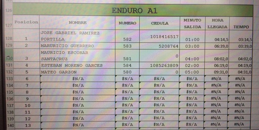 Delgado, en enduro A1 José Gabriel Ramírez y en la categoría élite Jaime