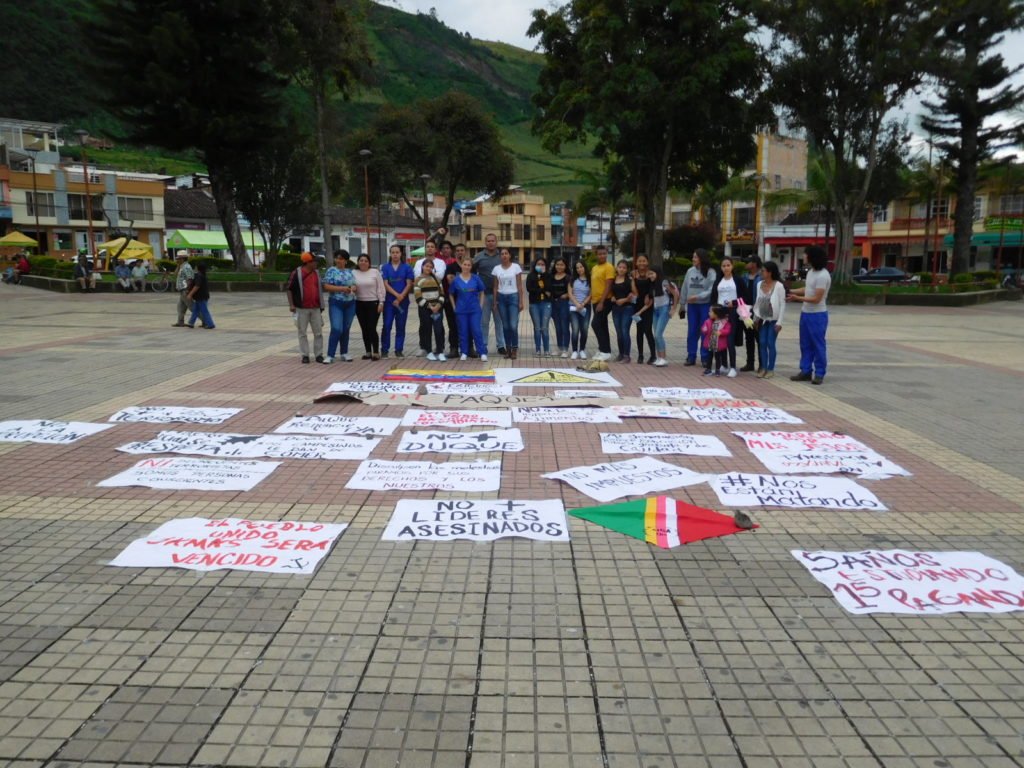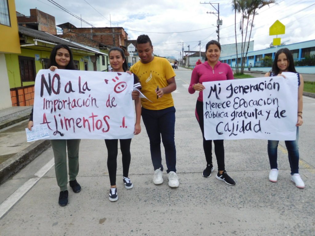 En el centro del parque principal ubicaron los letreros que portaron en desarrollo del desfile y en seguida intervino el estudiante de derecho Alejandro de la Rosa Palomino, quien convocó a la movilización social.