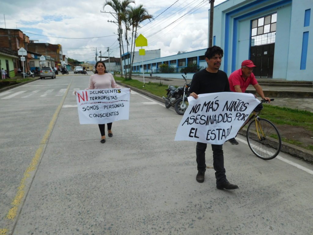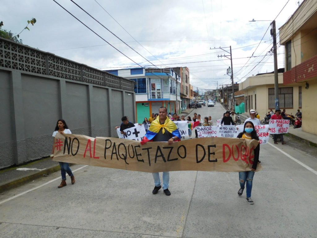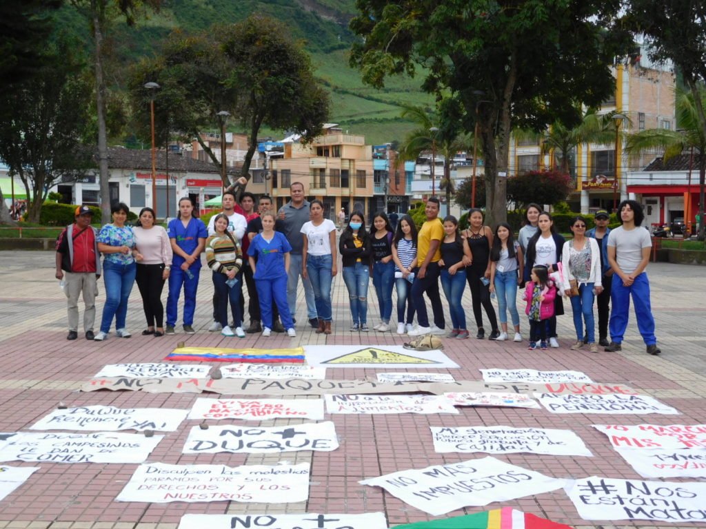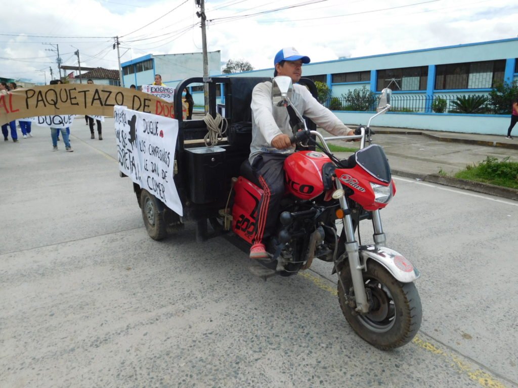 Varios sandoneños participaron en la marcha entre el barrio Meléndez y el parque principal de Sandoná, en el marco del Paro Nacional, convocado por las centrales obreras.