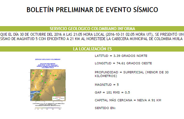 noche con epicentro a 21 kilómetros al noreste de la cabecera municipal de