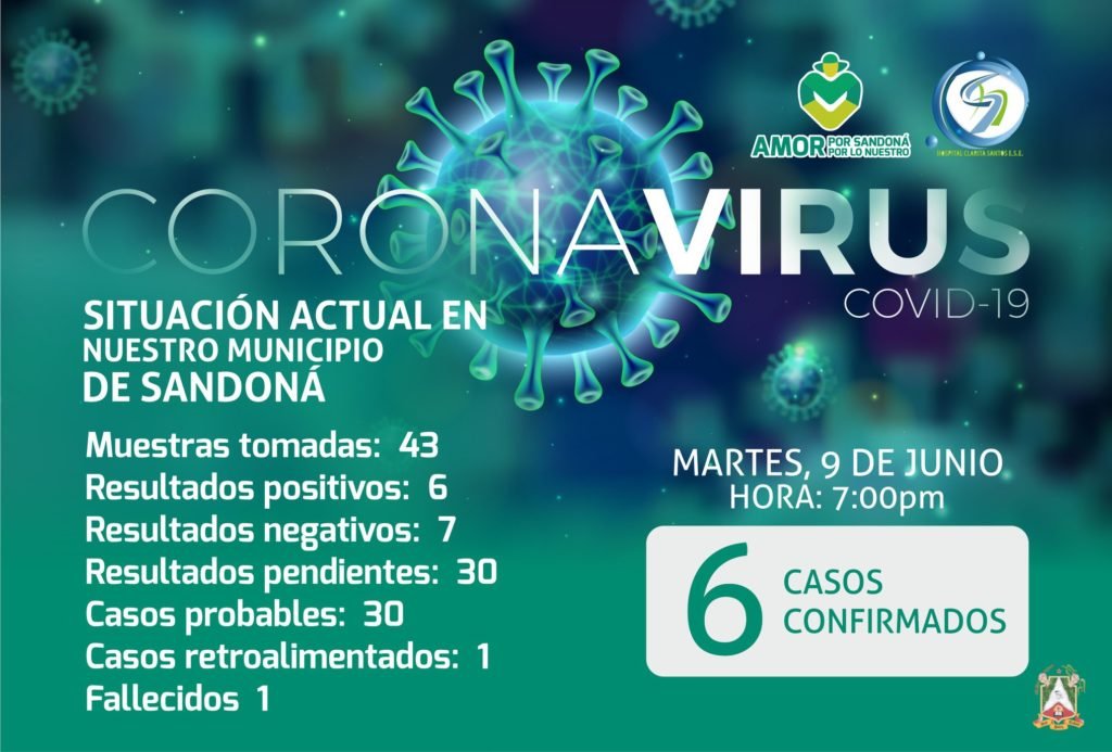 El Hospital Clarita Santos de Sandoná compartió las cifras relacionadas con la situación del coronavirus en esta localidad, hasta las 7 de la noche de este martes 9 de junio.