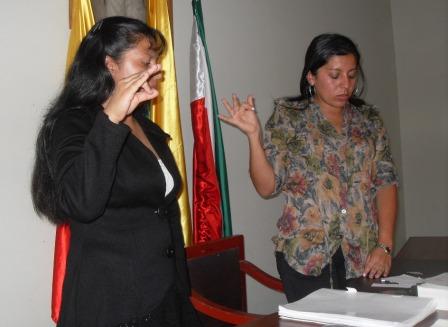 La nueva funcionaria, quien fue apoyada por 11 de los 13 concejales, juró ante la presidente del concejo Paulina Guerra Quetamá y de inmediato asumió las funciones como secretaria de la corporación municipal.