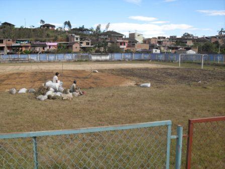 Segundo Cerón que estuvo al frente de la obra indicó que desde la semana anterior se dedicó a a sembrar el pasto en la cancha, luego de haber