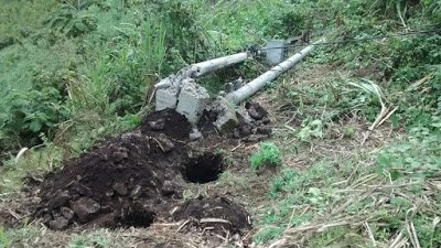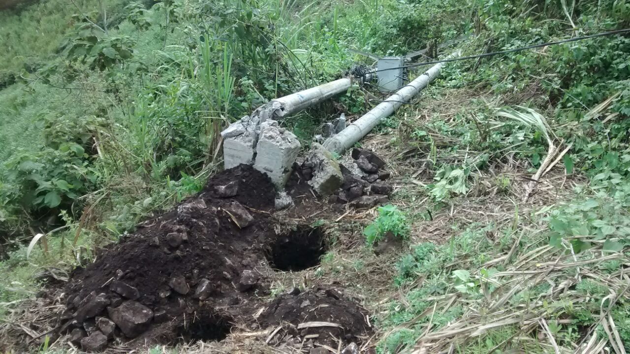 Un deslizamiento de tierra y piedras presentado el sábado en la noche tumbó los postes de concreto y el transformador causándose el corte de energía eléctrica a los moradores del Maco.