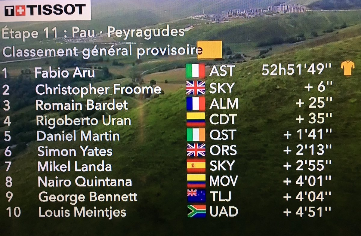 clasificación general el italiano Fabio Aru es el nuevo líder con un tiempo