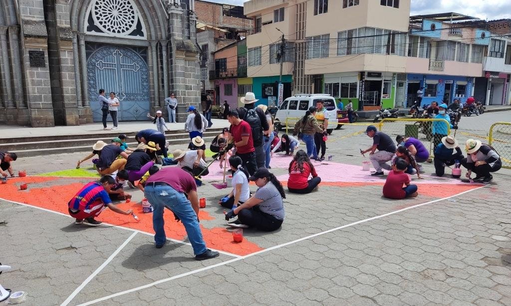 Los funcionarios de la Administración Municipal participaron inicialmente en el barrido de la calle y posteriormente en la pintura de los sectores cercanos a la basílica Nuestra Señora del Rosario.