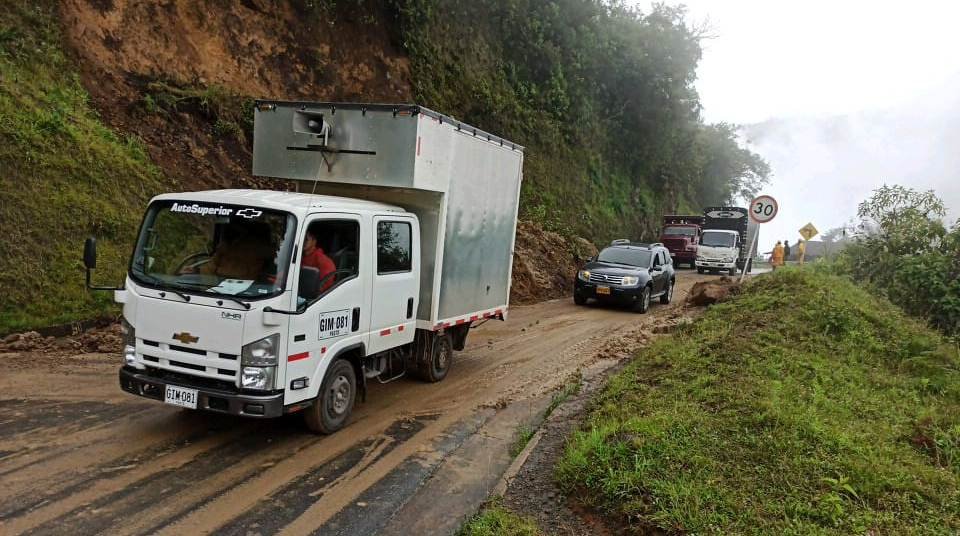 La vía se bloqueó este martes en la madrugada, razón por la cual los vehículos pequeños utilizaron la vía alterna por Santa Rosa.