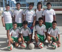 | Equipo de voleibol del IESTA Arriba: Andrés Narváez, Luis Rosero, Danilo Meneses, la profesora Magaly López y Carlos Paz. Abajo: Angel Romo, Alejandro Cajigas, Brayan Ortiz y Felipe Fajardo |