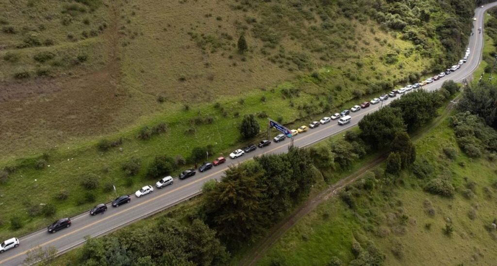 Las imágenes de las filas interminables de vehículos, ciclomotores y taxis recuerdan más a la vecina Venezuela que a Colombia. El presidente Gustavo Petro estaba en Europa la semana pasada y ante la escasez de combustible en el departamento de Nariño decidió regresar a Colombia “de inmediato”. Desde Ipiales, en la frontera con Ecuador, anunció el domingo un precio máximo por galón de gasolina de 8.916 pesos. Un día después es difícil encontrar ese precio.