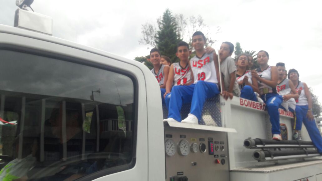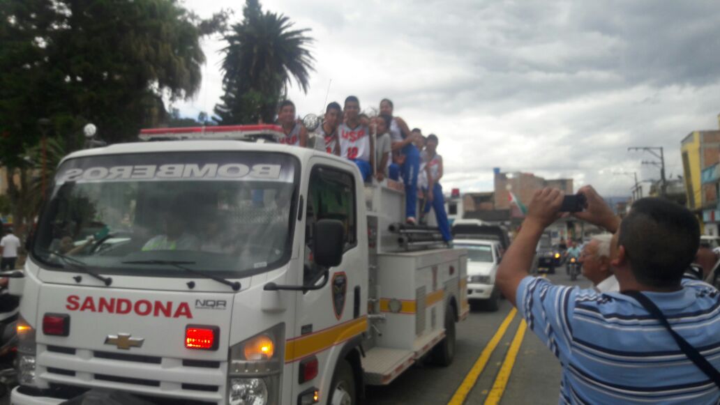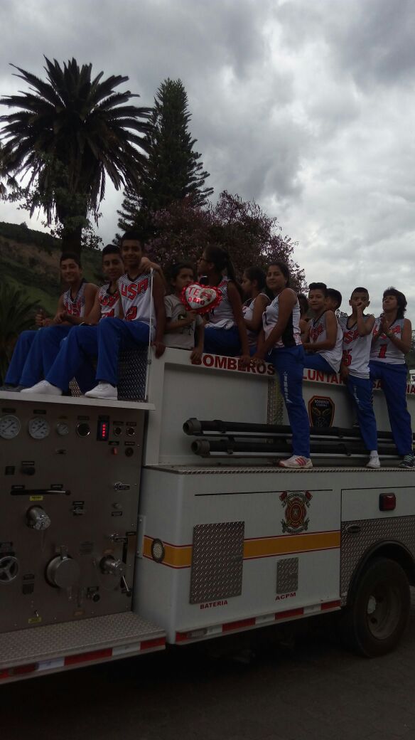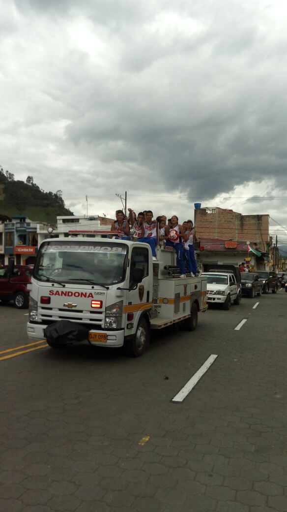 desfilaron en el carro de bomberos desde el barrio San Andrés hasta la Alcaldía